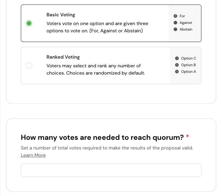 Adds front-end changes for Quorum Voting. Works the same as Single choice voting with slight UI changes.