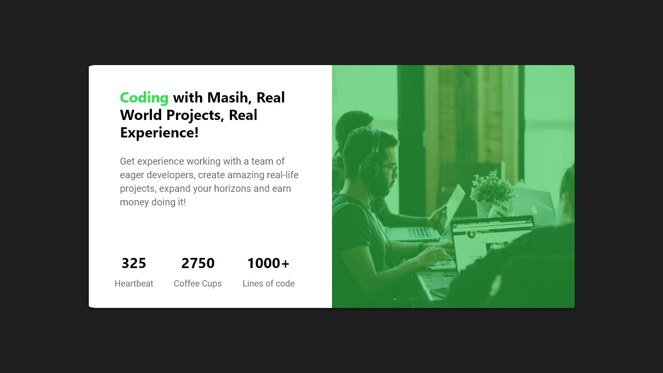 Coding with Masih is a project that aims to help junior developers learn the basics of front-end programming with HTML and CSS. The project covers topics such as creating web pages, styling elements, using selectors, and applying layout techniques like flex box and CSS grid. You will also learn how to turn a design file into a live website that looks and works great.