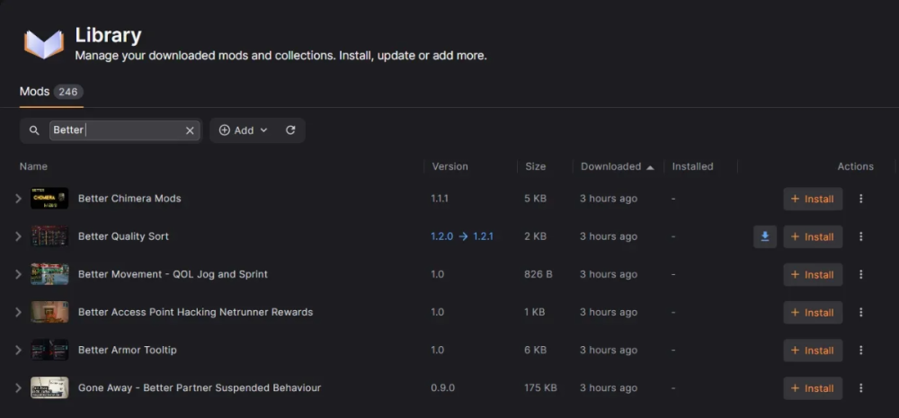 One of the most requested features from community feedback was the ability to search installed mods. We've added this to the Library section and will be including it on other relevant pages in a future release.