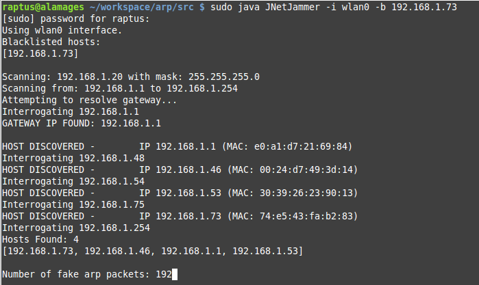 The network jamming is done by the JNetJammer class and the MITM(Man in the middle) is done by the JMITM class. REMEMBER in order to run these classes you need to be root, download the src/ and compile them