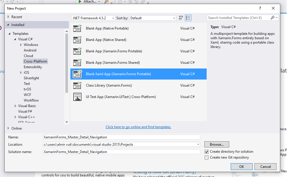 First of all we need to create new project, for this tutorial I will make new Xamarin.Forms app like this;