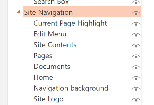 - PowerPoint should automatically take you to the master slide called Communication site. Select the site navigation by clicking on the site icon and click Copy.
