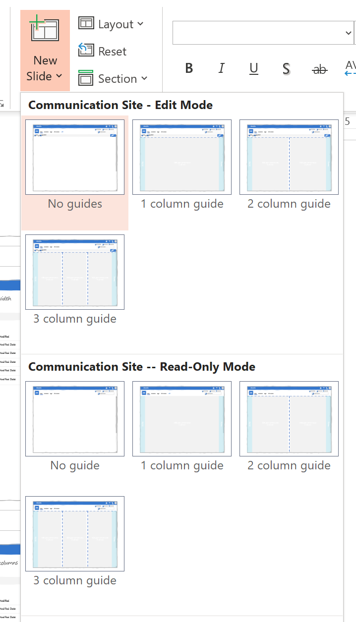 - For now, every slide uses the communication site layout (and the read-only variation). I'll add the team site layout if I get requests to do so