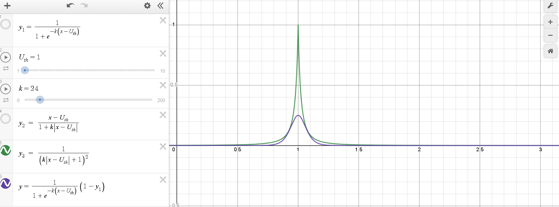 Thank you, this is a good question. I think the reason fast sigmoid is used is to avoid gradient vanishing because you can see the amplitude of them are significantly different in the plot. For BP, delta Wij will include a product of activation function and other elements. If the value of derivative of activation function is low, it may cause gradient vanishing ( https://arxiv.org/pdf/1901.09948) Additionally, the source code refers to "SuperSpike: Supervised Learning in Multilayer Spiking Neural Networks." Zenke mentioned that any functions peak at the spiking threshold should work. The purpose is to mimic spike. Lastly, fast sigmoid improves speed because we don't need to evaluate exp (https://pmc.ncbi.nlm.nih.gov/articles/PMC6118408/pdf/neco-30-1514.pdf). |