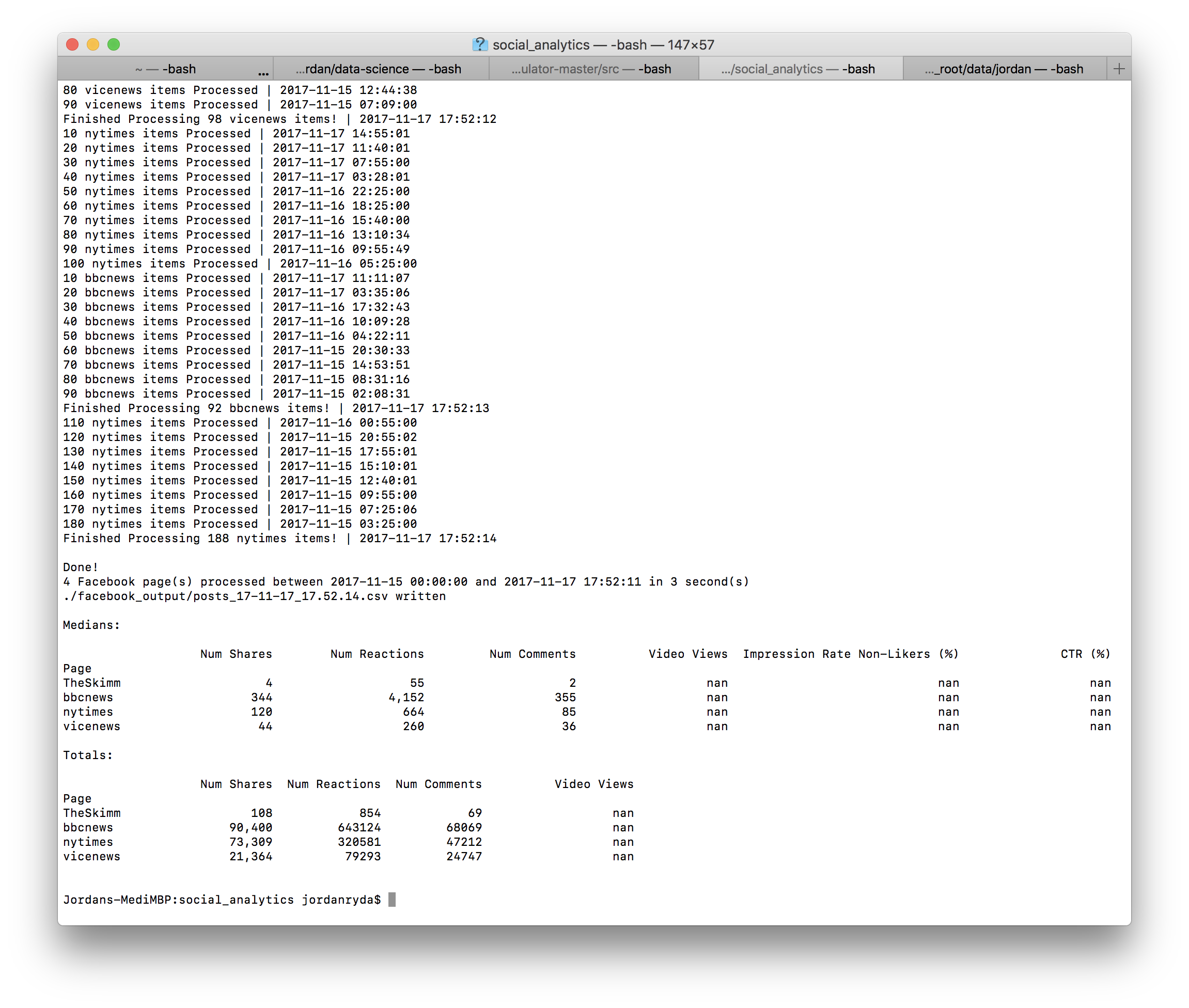 python get_fb_data.py video 5 (Owned pages only for video-specific data)