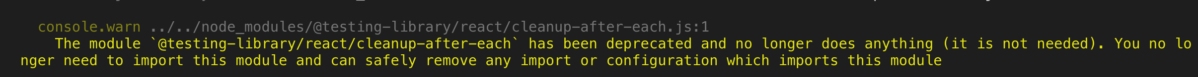 The module `@testing-library/react/cleanup-after-each` has been deprecated and no longer does anything (it is not needed). You no lo